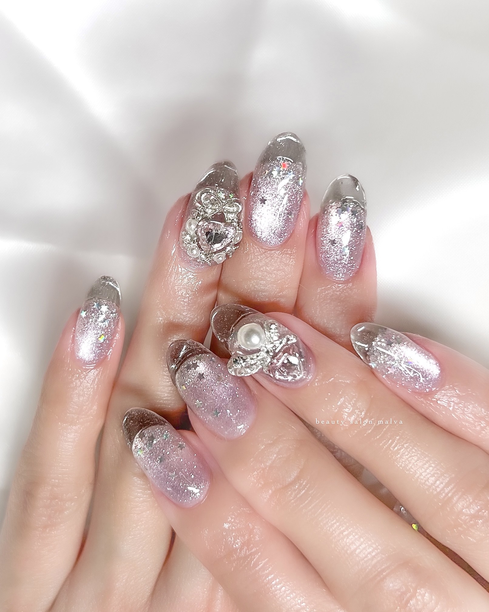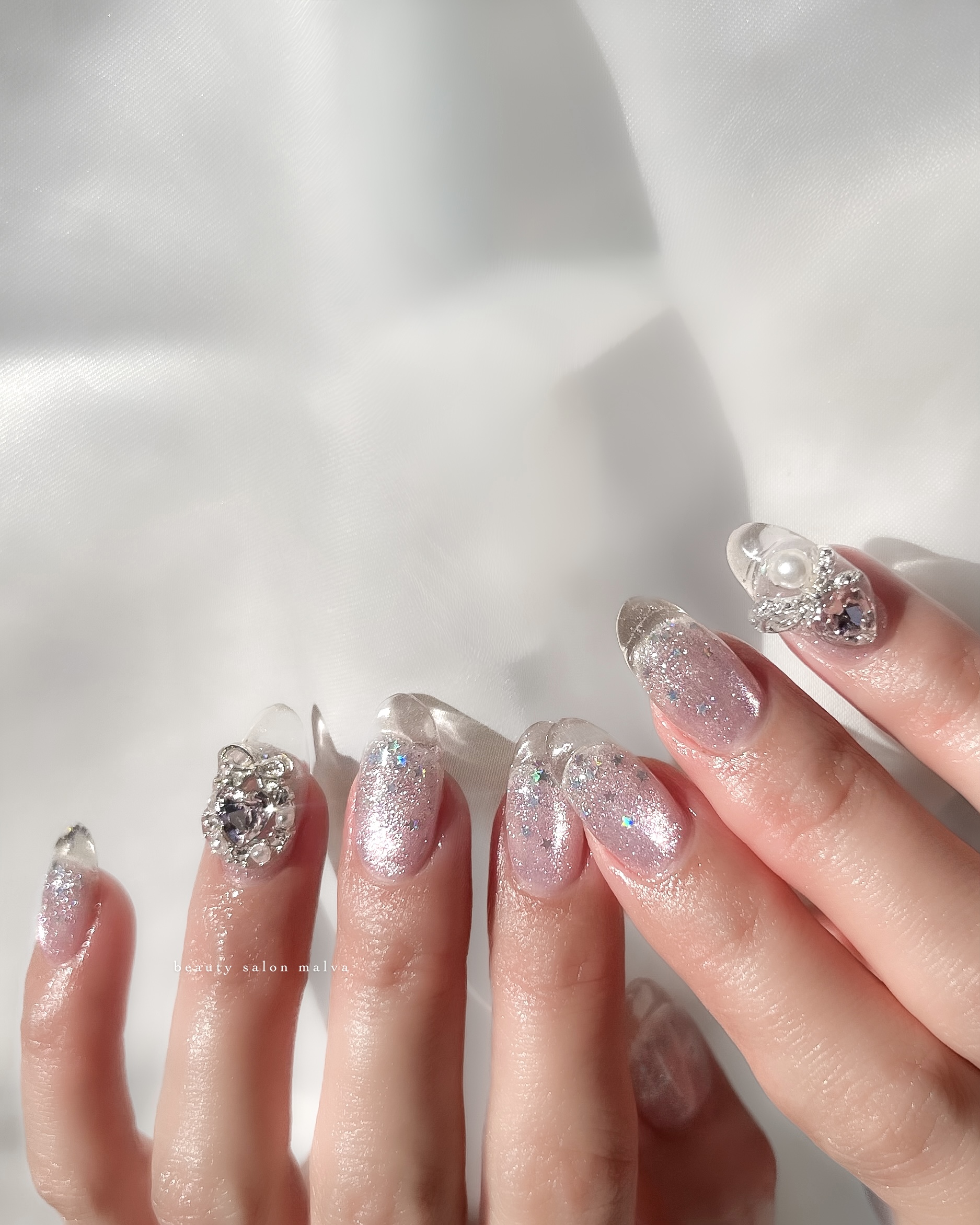 ストーンやパールをアクセサリー感覚で楽しめるので、イベントシーズンにも人気のスタイルです♪