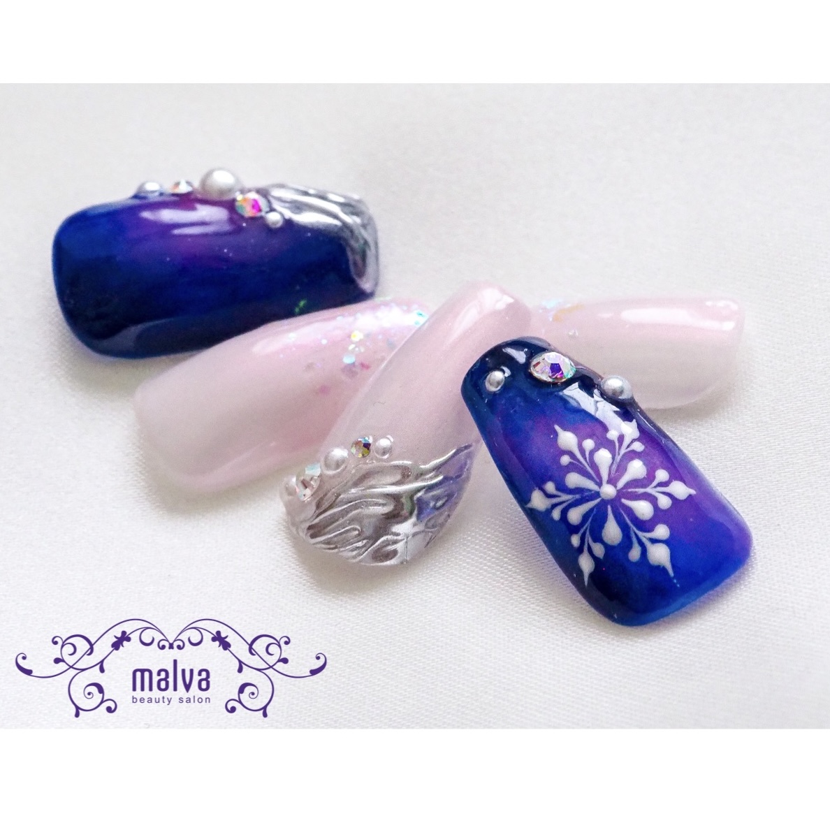 雪の結晶は手書きでなので爪に合った大きさで描けます♪